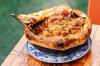 Indian spices delight in this hearty bowl of goat neck, saffron, and basmati rice